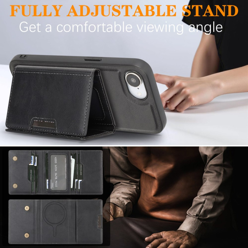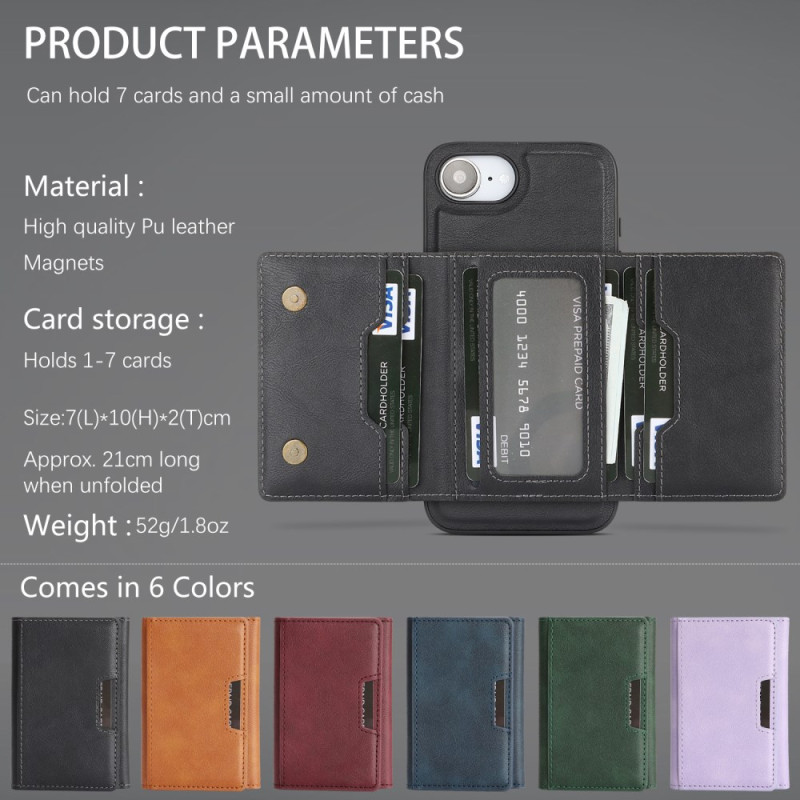 Découvrez l'étui multifonction pour iPhone 17E / 16E : porte-cartes détachable magnétique, support ajustable et protection renforcée. Compatible MagSafe avec aimants haute performance N52. Design 2-en-1 pratique pour ranger cartes et espèces.