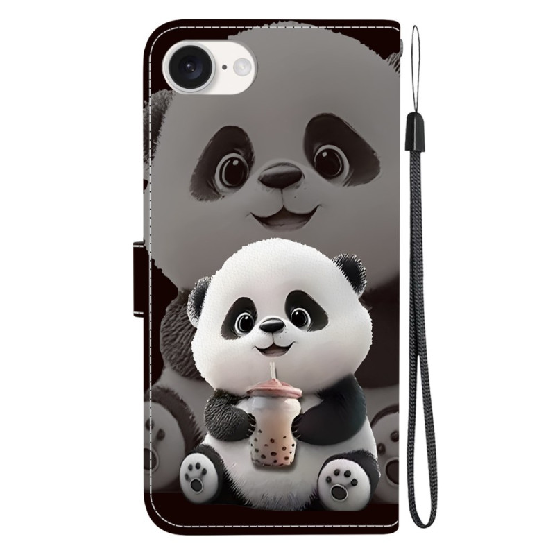 Étui portefeuille élégant avec motif Panda Milk Tea pour iPhone 17E / 16E. Design raffiné combinant protection optimale et fonctionnalité. Support pliable intégré pour un visionnage confortable, 2 emplacements cartes et compartiment billets. Fermeture magnétique sécurisée et dragonne détachable incluse.