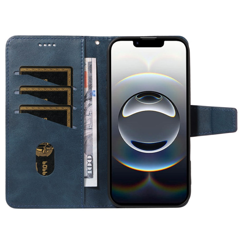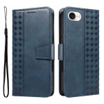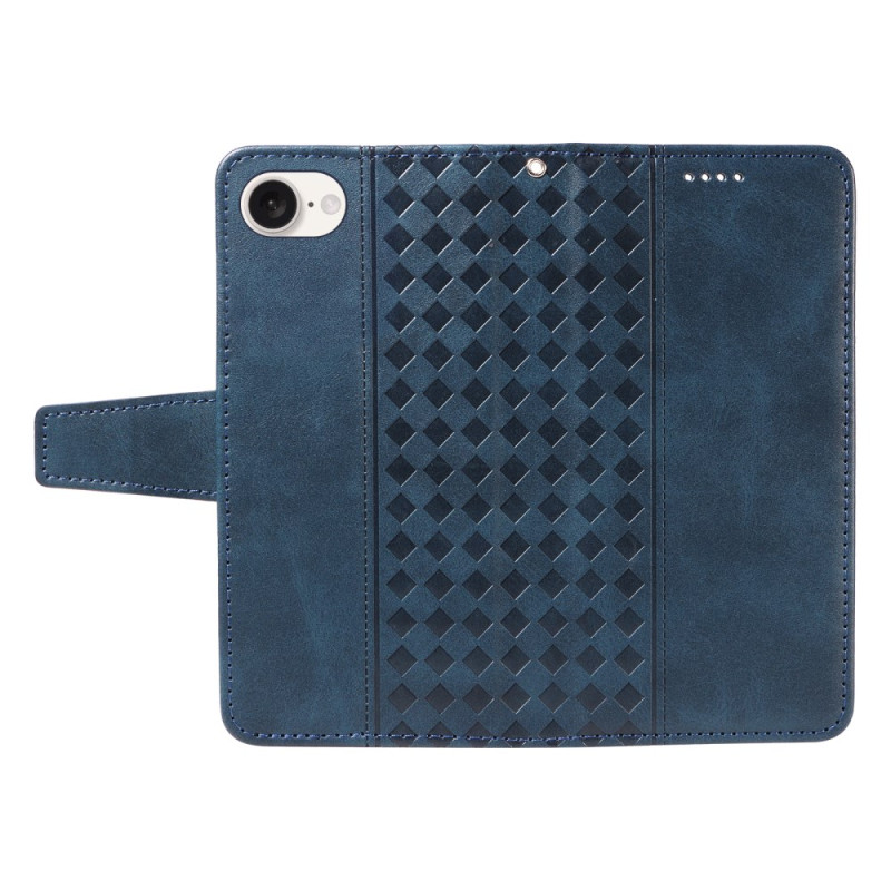 Étui portefeuille élégant avec motif quadrillé en relief pour iPhone 17E / 16E. Comprend des emplacements pour cartes, une fonction support pratique et une dragonne amovible. Protection complète avec coque intérieure TPU et rabat en cuir synthétique.
