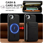 Étui 2-en-1 détachable avec portefeuille zippé magnétique compatible MagSafe. Rangement sécurisé pour plus de 10 cartes, espèces et clés. Protection hybride en cuir PU, PC et TPU avec technologie anti-RFID intégrée pour une sécurité optimale.