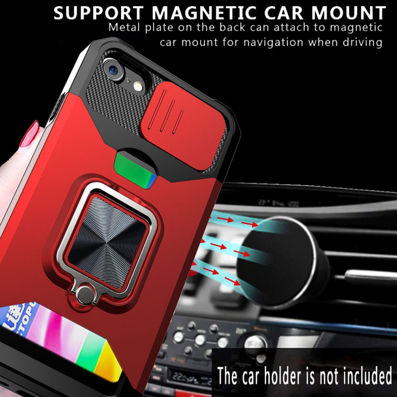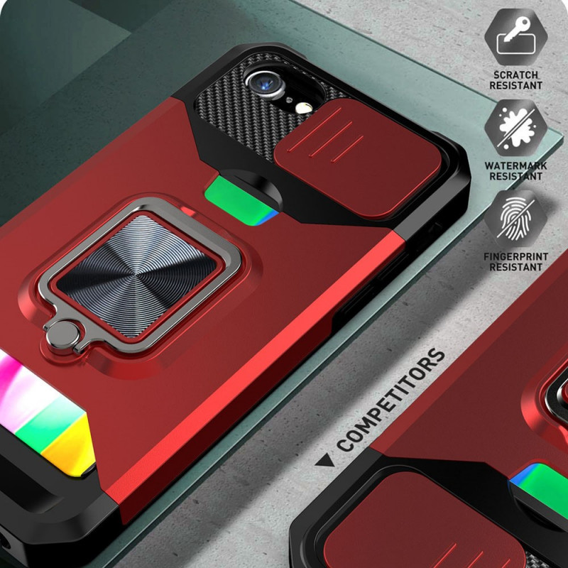 Votre iPhone SE 3 / SE 2 / 8 / 7 est magnifique avec cette coque dotée d'un porte-carte, d'un anneau-support et d'un protège lentilles à glissière.