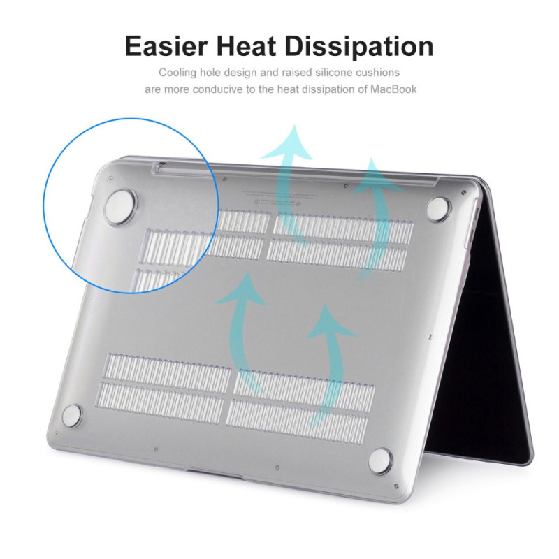 La partie inférieure de la coque comporte du silicone pour maintenir l'ordinateur surélevé évitant les surchauffes.