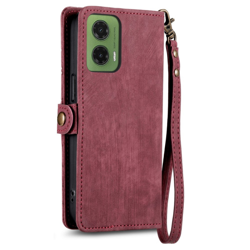 Découvrez notre housse portefeuille élégante et fonctionnelle pour Motorola Moto G35 5G. Fabriquée en cuir PU de qualité supérieure avec un design géométrique attrayant, elle offre une protection complète et des fonctionnalités pratiques comme des emplacements pour cartes, une poche zippée et une dragonne détachable.