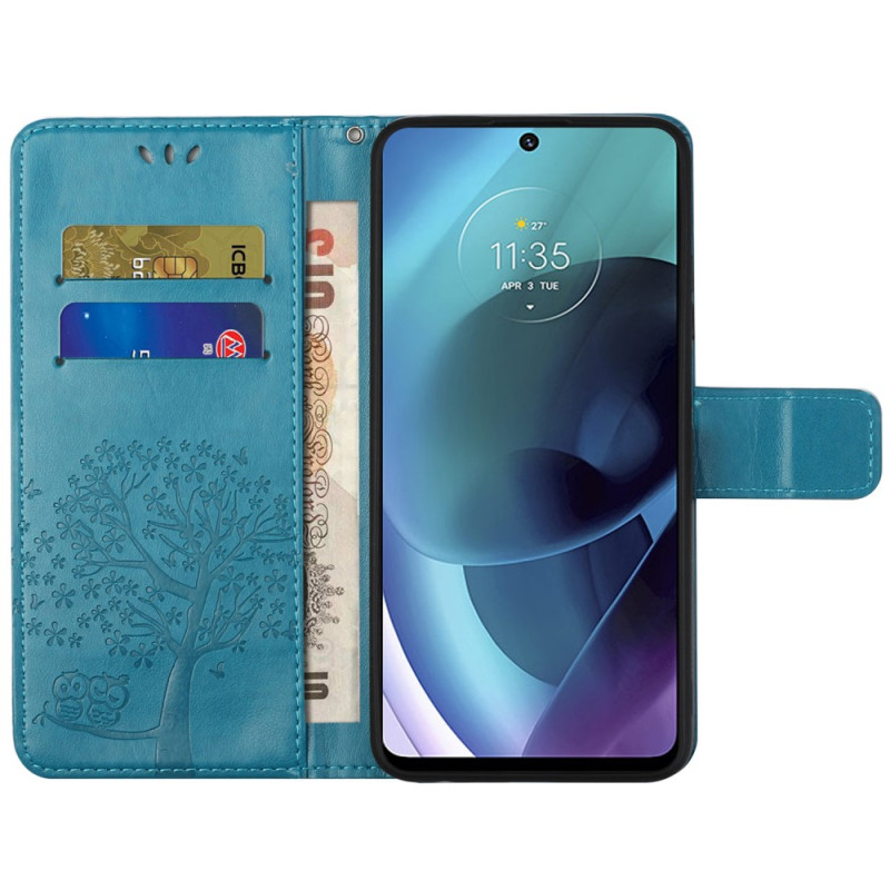 La housse Arbre et Hiboux Effet Cuir, avec rabat magnétique, assure la protection de votre Moto G51 5G.