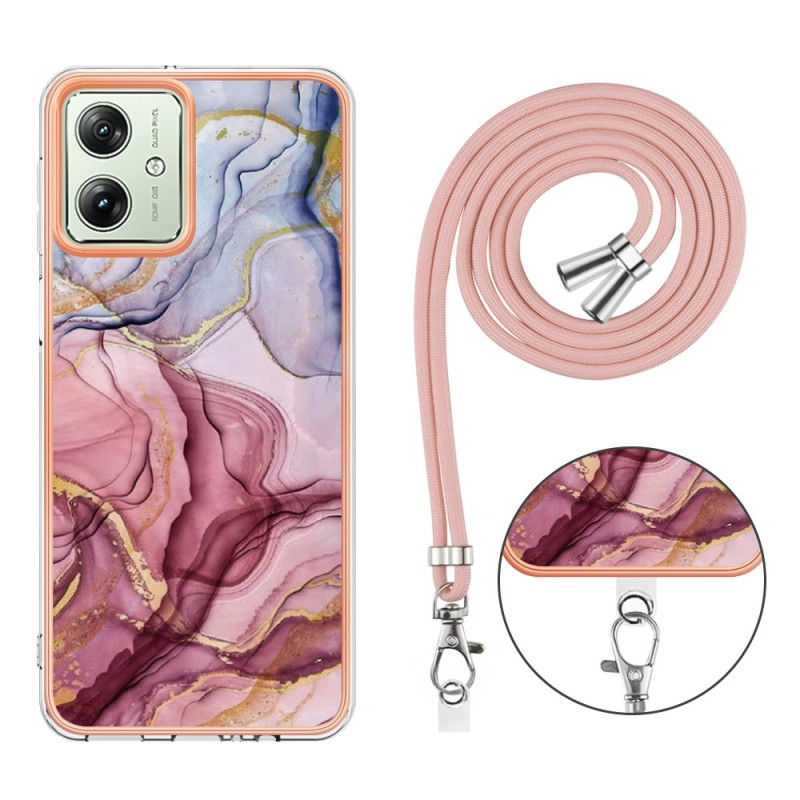 Découvrez notre coque à cordon pour le Motorola Moto G54 5G, dotée d'un motif marbre vivant et des bords électroplaqués.
