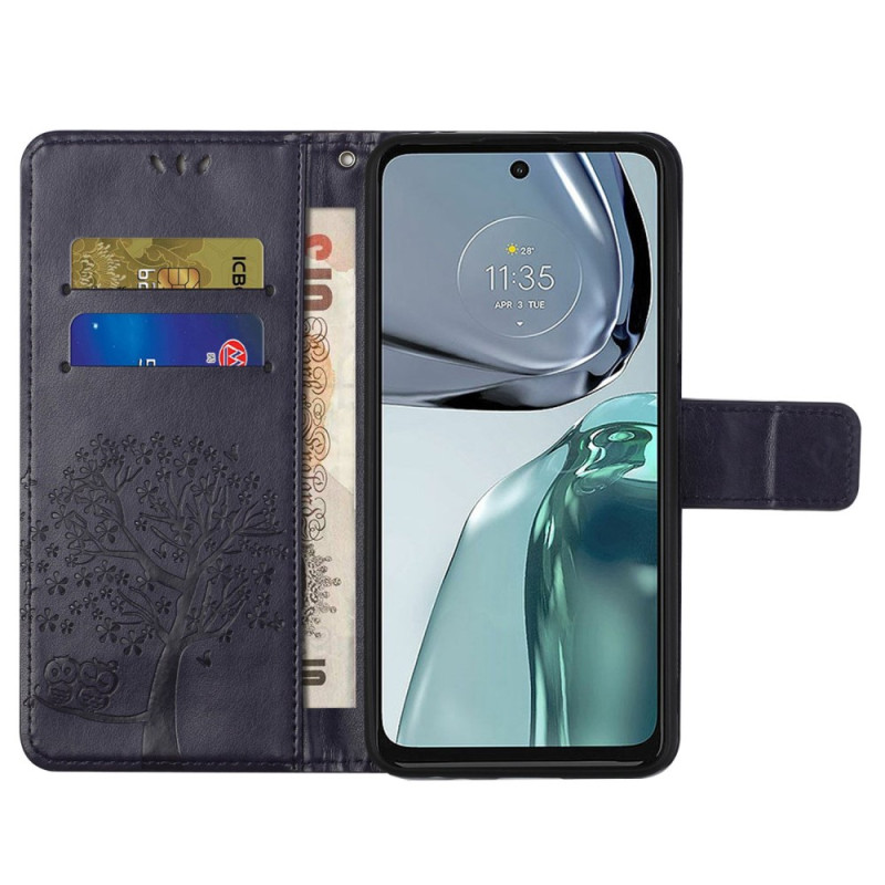 La housse Arbre et Hiboux, avec fermoir magnétique, assure la protection de votre Moto G62 5G tout en faisant portefeuille.