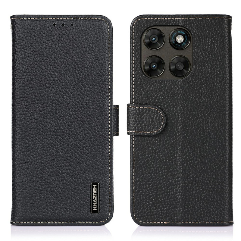 Protégez votre Motorola Moto G77 5G / G67 5G avec cet étui portefeuille en cuir véritable noir élégant.