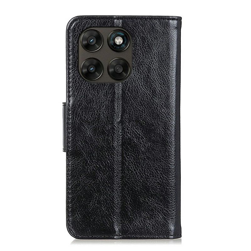 Protégez votre Motorola Moto G77 5G / G67 5G avec cet étui portefeuille noir texture nappa souple.
