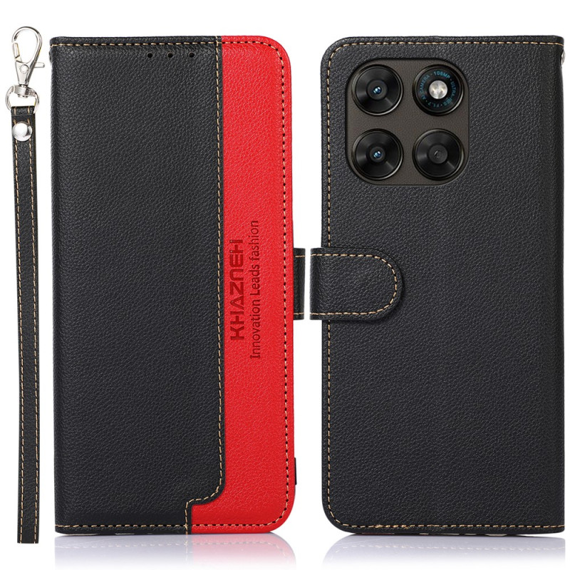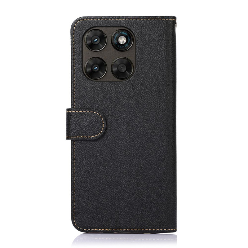 Protégez votre Motorola Moto G77 5G / G67 5G avec cet étui portefeuille noir texture litchi élégant.