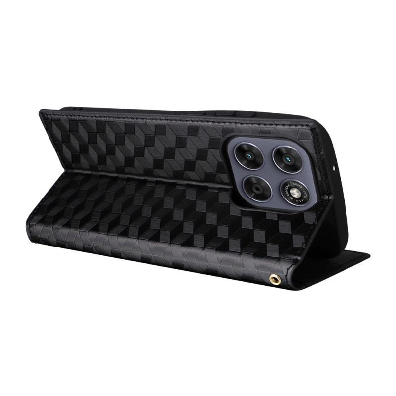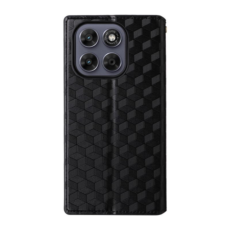 Apportez style et protection à votre Motorola Moto G77 5G / G67 5G avec cet étui portefeuille noir à motif losange.