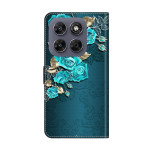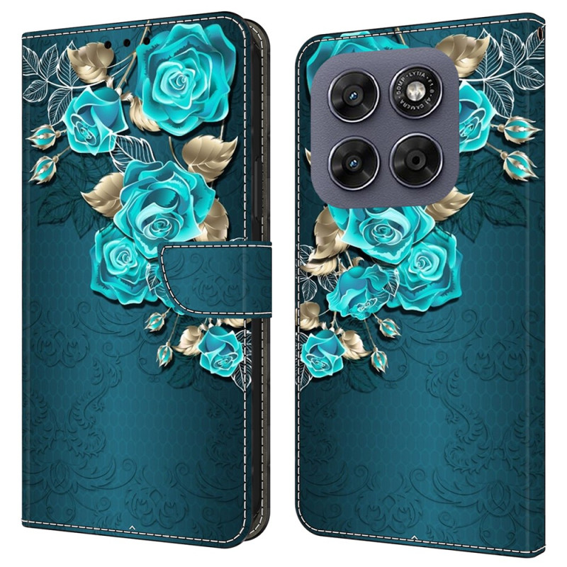 Housse Moto G77 / G67 Roses Bleues