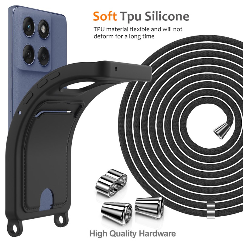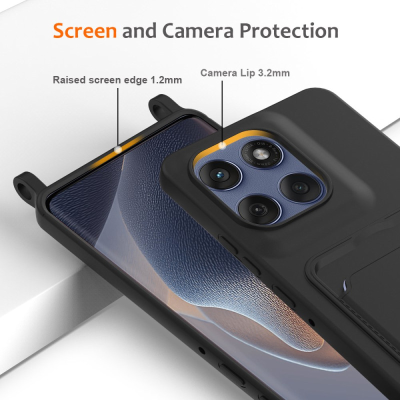 Découvrez notre coque en silicone liquide pour Motorola Moto G Stylus 5G / Edge 60 Stylus 5G. Dotée d'un porte-carte intégré et d'une lanière ajustable, elle offre une protection optimale avec son design anti-empreintes et ses bords surélevés pour la caméra.