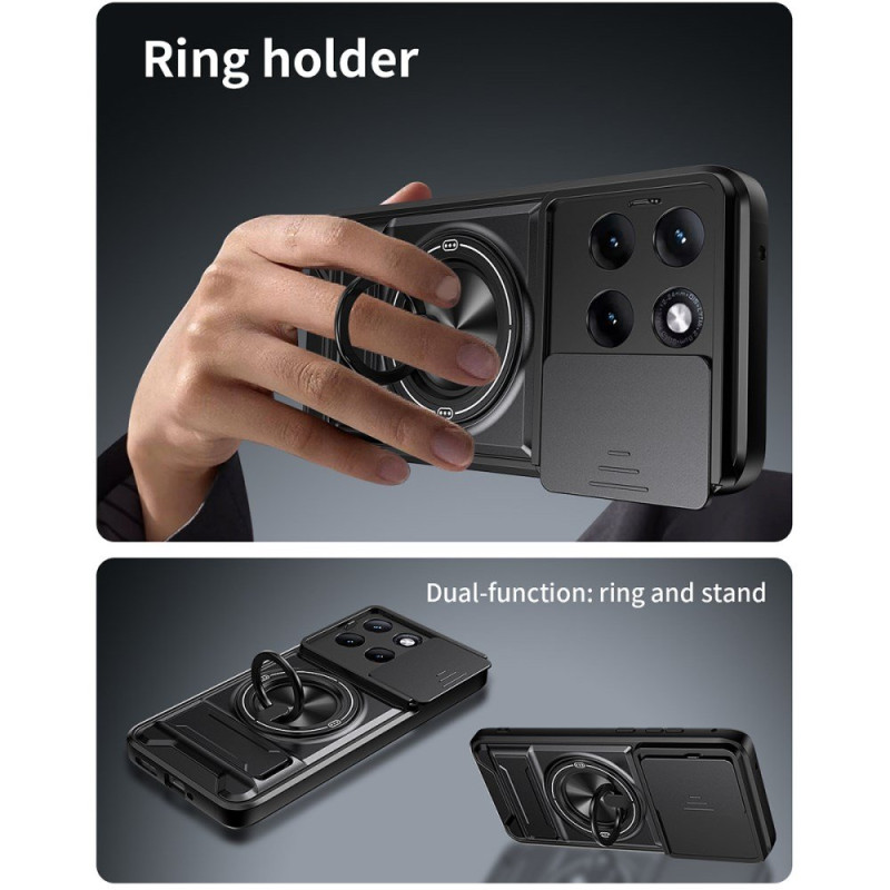 Pratique, elle dispose d'un cache coulissant pour l'objectif : l'anneau sert de support pliable.