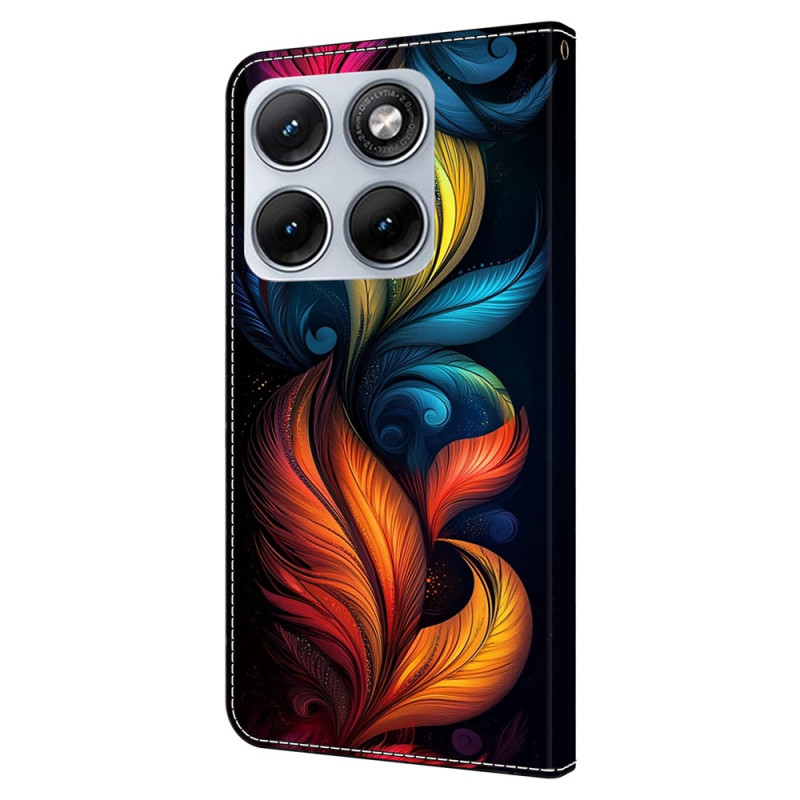 Protégez votre Motorola Edge 70 Fusion 5G avec cet étui portefeuille motif plumes colorées au style vibrant.