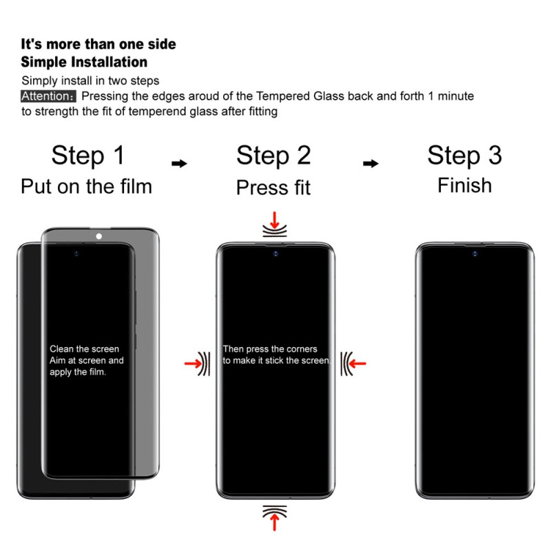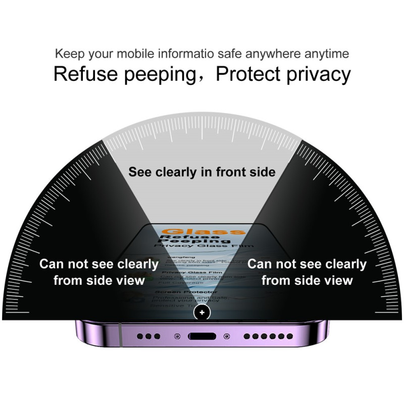 • Type : verre trempé 3D incurvé anti espion