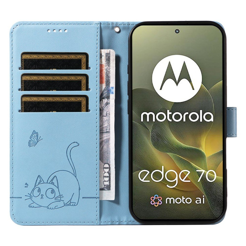 Protégez votre Motorola Edge 70 5G avec cet étui au motif chat gaufré.