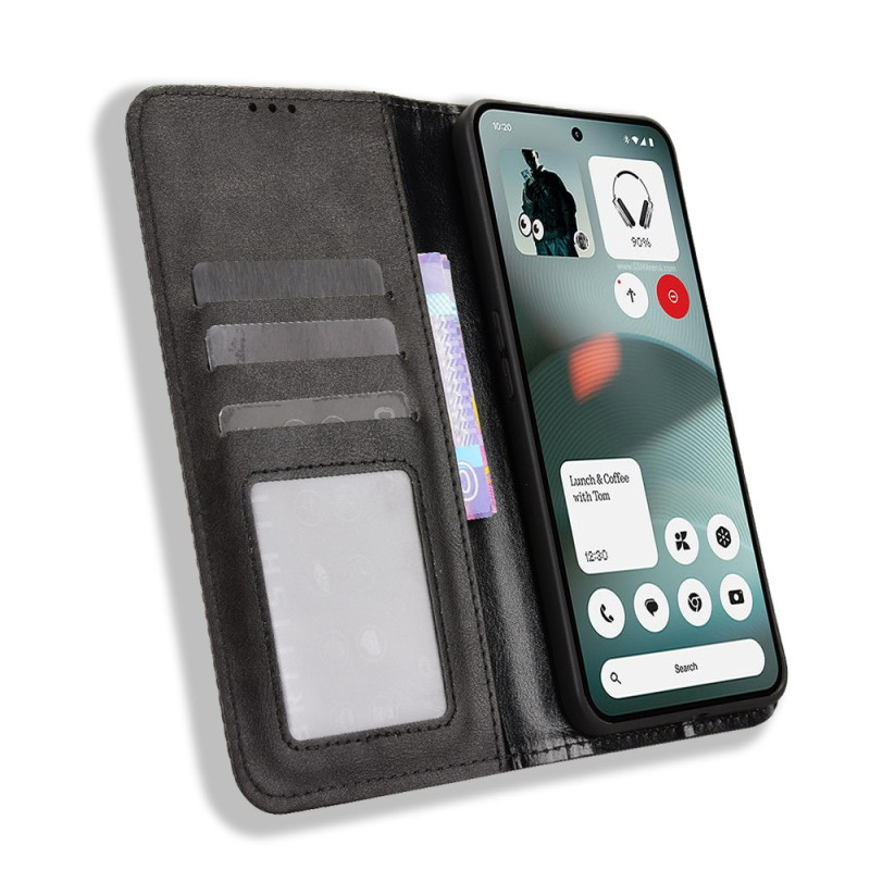 Protégez votre Nothing Phone (3a) Lite 5G avec élégance grâce à cet étui portefeuille en cuir PU rétro. Doté de multiples fentes pour cartes, d'un support ajustable et d'une fermeture magnétique automatique, il allie style vintage et fonctionnalité.