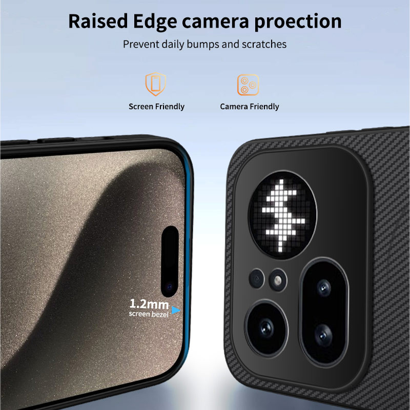 Sa texture fibre de carbone apporte une touche élégante tout en améliorant la prise en main grâce à sa finition antidérapante.