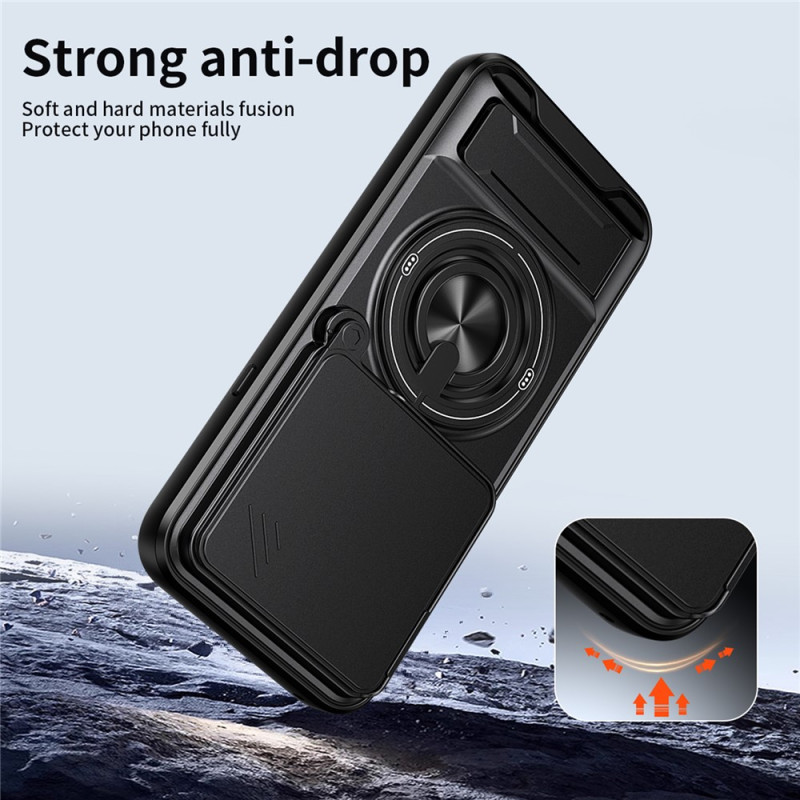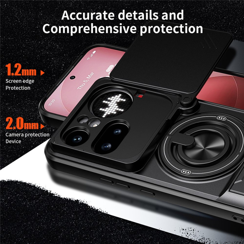 L’anneau rotatif intégré facilite l’utilisation à une main et sert également de support pliable.