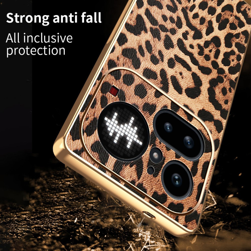 Son motif léopard associé aux finitions dorées crée un style affirmé et élégant.