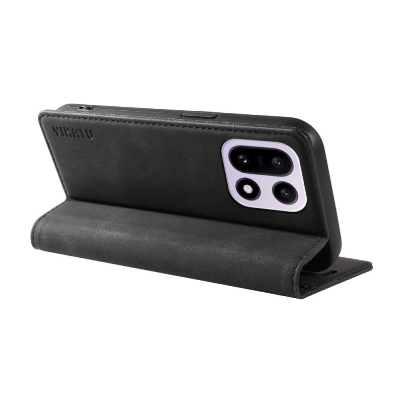 Étui portefeuille élégant pour OnePlus 15 5G avec fonction support intégrée. Dispose de deux emplacements pour cartes et une poche pour espèces. Protection complète des bords avec finition haut de gamme et toucher doux au grain cuir.