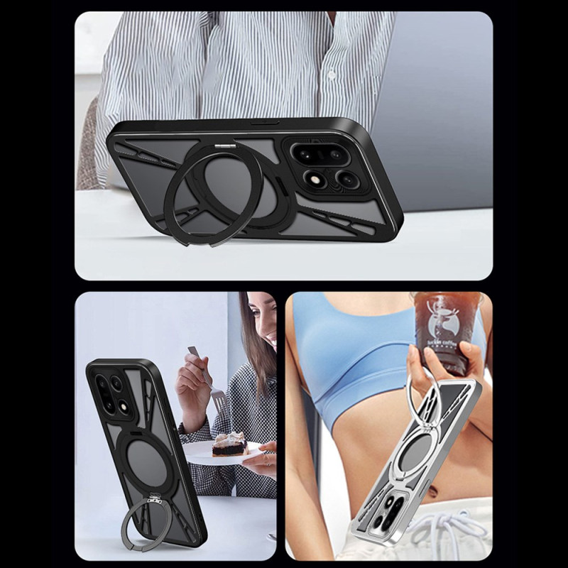 Protégez votre OnePlus 15 5G avec cette coque magnétique innovante. Son design alvéolé assure une dissipation thermique optimale tandis que le support rotatif intégré offre un visionnage mains libres. Compatible MagSafe pour une recharge sans fil pratique.