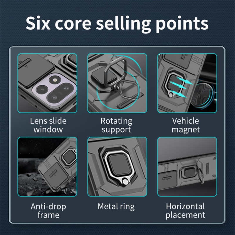 Protégez votre OnePlus 15 5G avec cette coque robuste dotée d'une béquille rotative intégrée et d'un cache objectif coulissant. Conception anti-choc avec bords surélevés pour une protection optimale de l'écran et de la caméra. Accès facile à toutes les fonctionnalités.