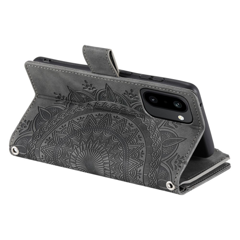 Étui portefeuille élégant en cuir PU pour OnePlus 15R 5G avec motif mandala raffiné. Doté de multiples emplacements pour cartes, d'une poche zippée et d'une dragonne pratique. Fonction support intégrée pour une utilisation mains libres et fermeture magnétique sécurisée.