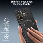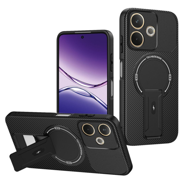 Protection hybride militaire en TPU + PC avec texture fibre de carbone. Support intégré rétractable pour visionnage mains libres. Compatible support magnétique voiture. Protection surélevée écran et caméra. Revêtement anti-traces.