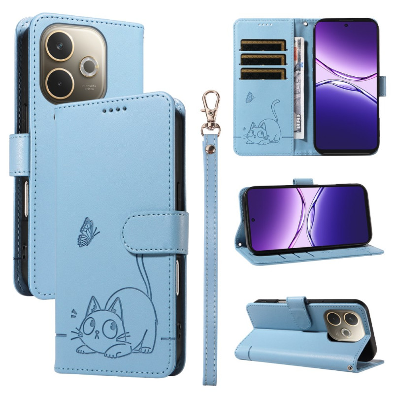 Protégez votre Oppo A5 Pro 5G / 4G avec style grâce à cet étui portefeuille élégant orné d'un motif chat porte-bonheur. Design multifonctionnel avec 3 emplacements pour cartes, poche pour billets et dragonne pratique.