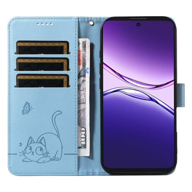 Housse Oppo A5 Pro 5G / 4G Gravure Chat à Lanière