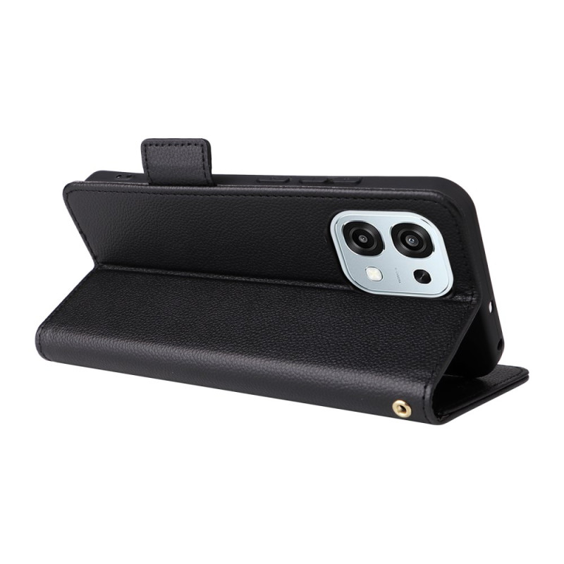 Étui portefeuille élégant avec texture litchi pour votre Oppo A6 Pro ou F31 5G. Doté de emplacements pour cartes, support mains libres et fermeture magnétique sécurisée. Inclut une dragonne pratique pour un transport facile.