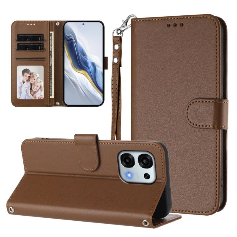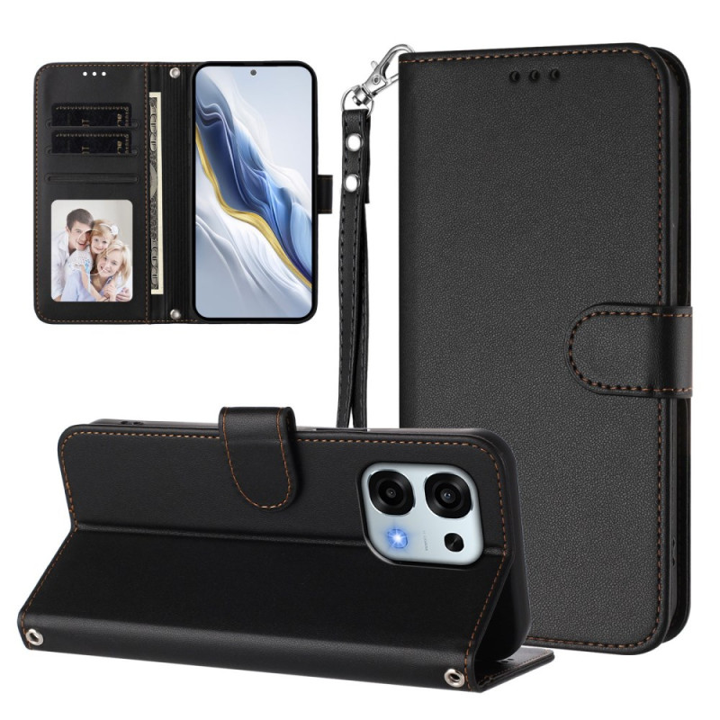 Étui portefeuille élégant pour Oppo A6 Pro 5G avec 3 emplacements pour cartes, support mains libres et dragonne pratique. Protection complète contre les chocs et chutes quotidiennes.