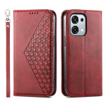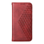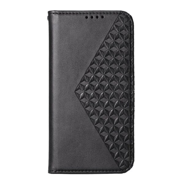 Étui portefeuille élégant avec texture grain de veau pour votre Oppo A6 Pro 5G / 4G. Design raffiné avec motif losange, emplacements pour cartes et compartiment cash intégrés. Fermeture magnétique sécurisée, fonction support et dragonne pratique incluse.