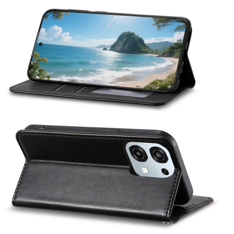 Découvrez cet étui portefeuille élégant pour Oppo A6 Pro 5G Doté de coutures tri-couleurs distinctives, il combine style et praticité avec ses 2 emplacements pour cartes, support de visualisation intégré et fermeture magnétique sécurisée...