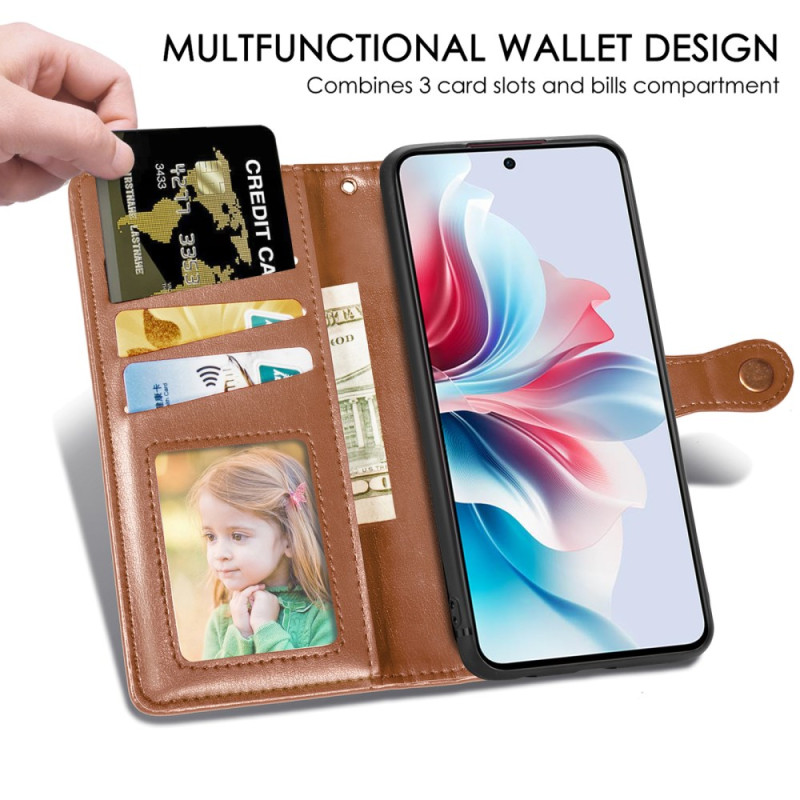 Étui portefeuille multifonction pour Oppo A6 Pro 5G avec support ajustable, fermeture magnétique sécurisée et dragonne amovible. Protection complète contre les chocs et rayures avec emplacements pour cartes et argent liquide.