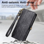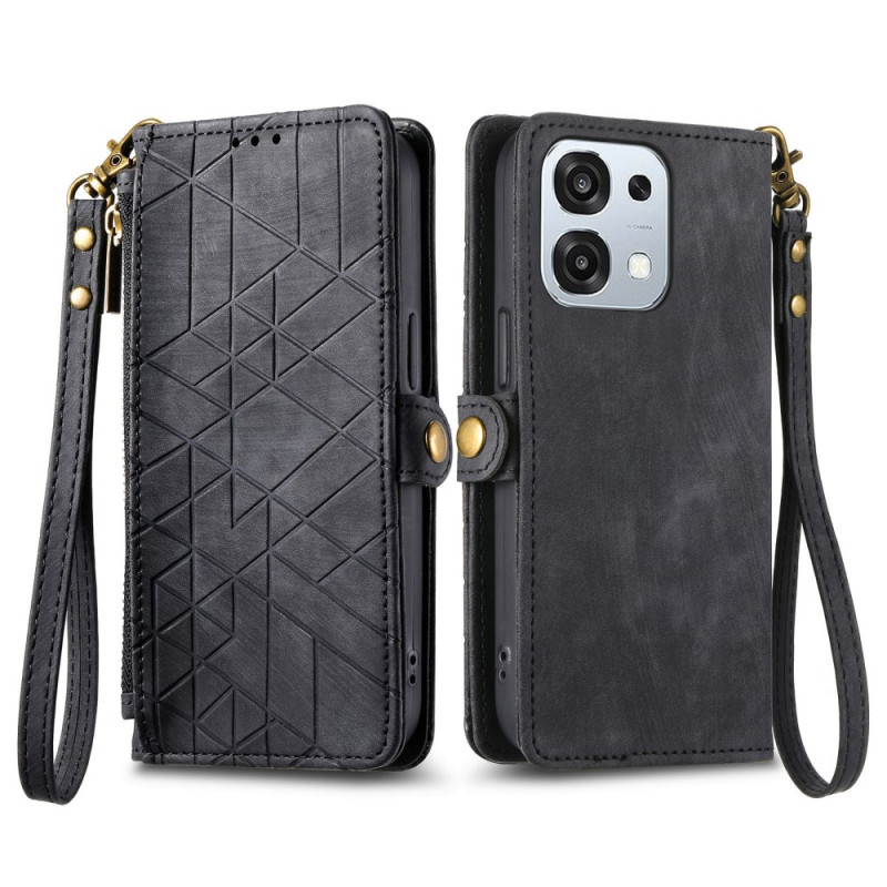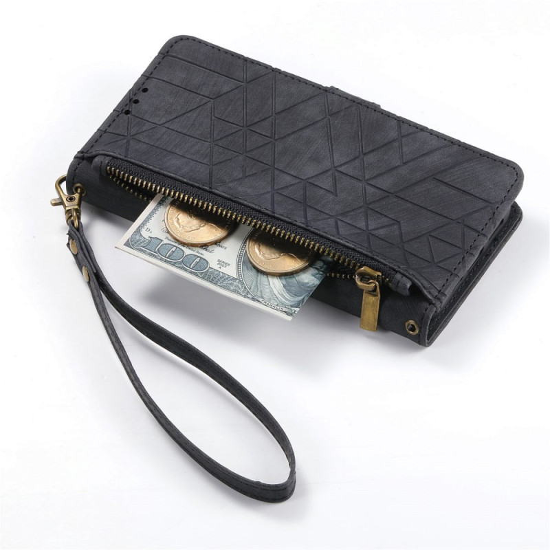 Protégez votre smartphone avec élégance grâce à cet étui portefeuille multifonction. Doté de multiples emplacements pour cartes, d'une poche zippée sécurisée et d'une dragonne pratique, il allie style géométrique et protection intégrale.