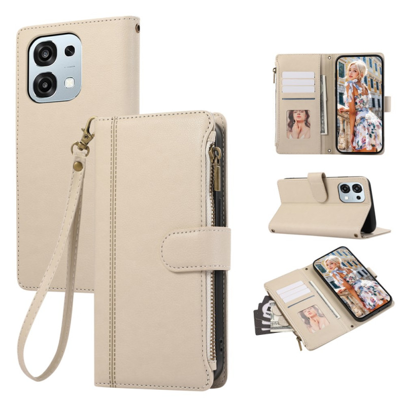 Étui portefeuille multifonction pour Oppo A6 Pro 5G avec multiples emplacements pour cartes, poche zippée sécurisée et dragonne détachable. Design élégant alliant protection premium et praticité au quotidien pour votre smartphone.