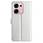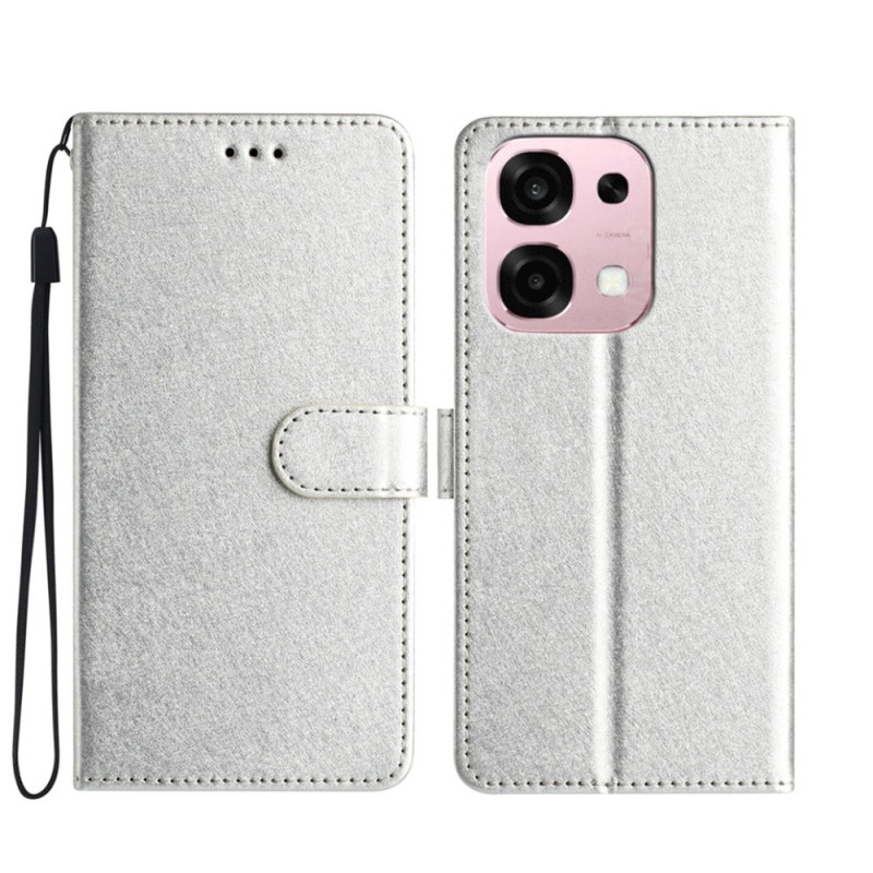 Étui portefeuille élégant en cuir PU texturé pour votre Oppo A6 Pro 5G / 4G. Protection complète avec 3 emplacements pour cartes, fonction support réglable et fermeture magnétique sécurisée. Comprend une dragonne détachable pour un transport facile.