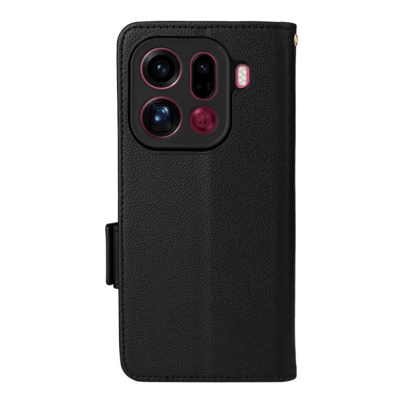 Découvrez cet étui portefeuille élégant pour Oppo Find X9 Pro 5G, alliant style et fonctionnalité. Avec sa texture litchi raffinée, ses emplacements pour cartes et sa dragonne pratique, il offre une protection complète tout en servant de support mains libres.