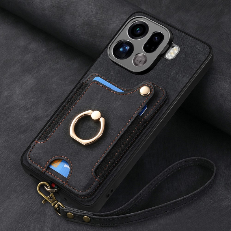 Protégez votre Oppo Find X9 Pro 5G avec style grâce à cet étui rétro en cuir PU. Doté d'un porte-cartes sécurisé avec technologie anti-RFID, d'un anneau support rotatif à 360° et d'une compatibilité magnétique pour support voiture.