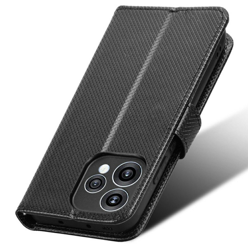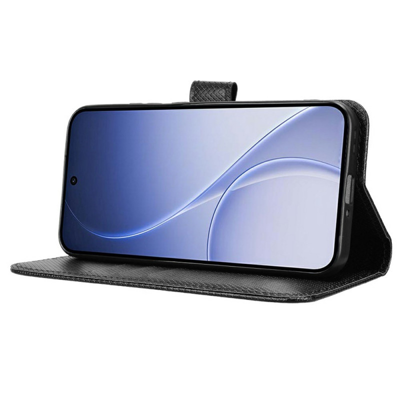 Étui portefeuille élégant en simili cuir avec texture diamant pour Oppo Reno 15 5G. Équipé de compartiments pour cartes, fermeture magnétique, support pliable et dragonne. Protection intégrale contre les chocs et rayures pour un usage quotidien pratique.