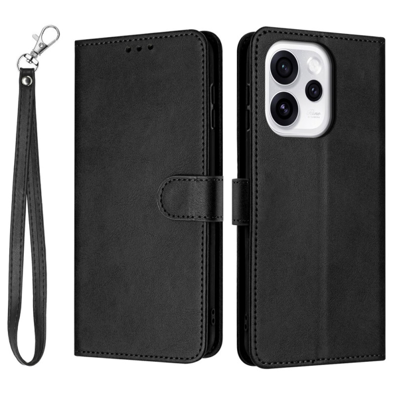 Étui portefeuille multifonction pour Oppo Reno 15 F 5G avec fonction support. Dispose de 3 emplacements pour cartes et d'une poche pour billets. Fermeture magnétique sécurisée et dragonne détachable incluse pour un transport facile.