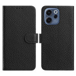 Étui portefeuille élégant en cuir véritable texture litchi pour Oppo Reno 15 F 5G. Comprend un support ajustable, 3 emplacements pour cartes, une poche pour espèces et une fermeture magnétique sécurisée. Protection optimale contre les chutes.