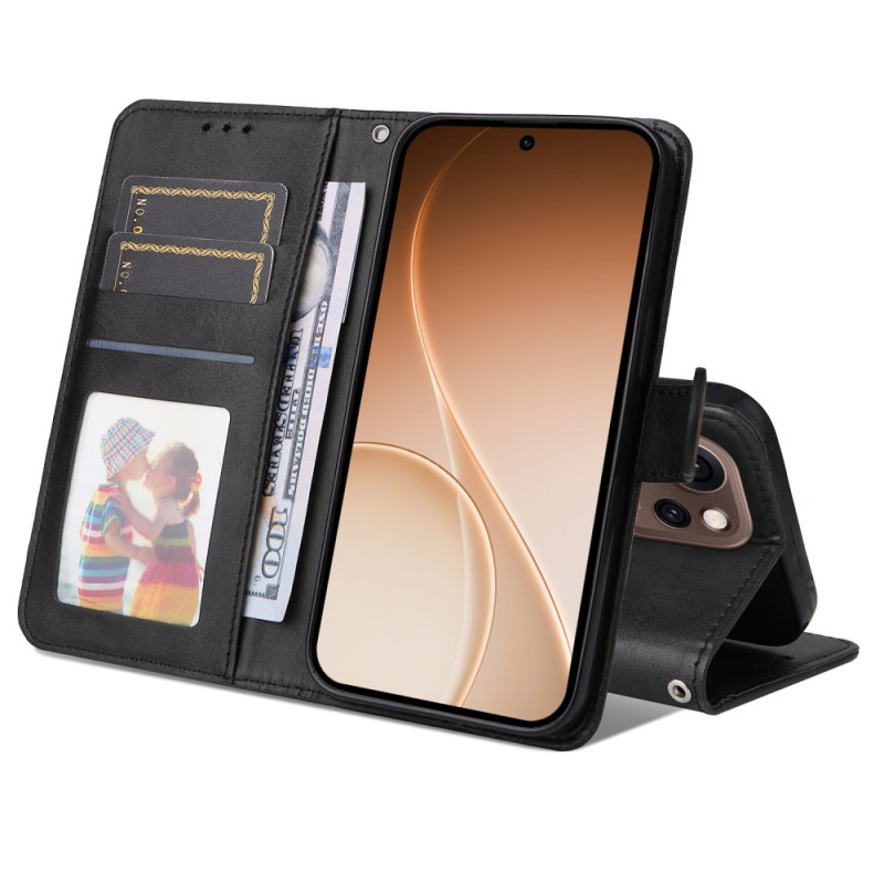 Découvrez notre étui portefeuille élégant pour Oppo Reno 15 Pro 5G. Conception sophistiquée avec fentes pour cartes, support intégré et fermeture magnétique sécurisée. Protection complète à 360° grâce à sa coque TPU robuste et son design à rabat.