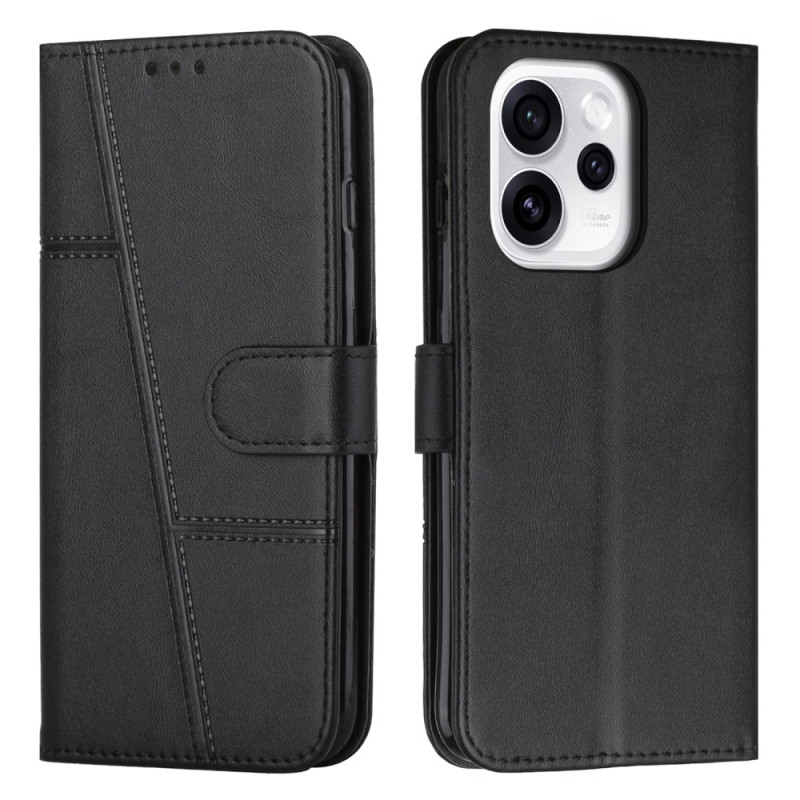 Étui portefeuille élégant en cuir PU pour Oppo Reno 15 Pro 5G. Design sophistiqué avec texture gaufrée, 2 emplacements pour cartes, 1 porte-photo et 1 compartiment billets. Support pliable intégré pour visionnage mains libres et fermeture magnétique sécurisée.