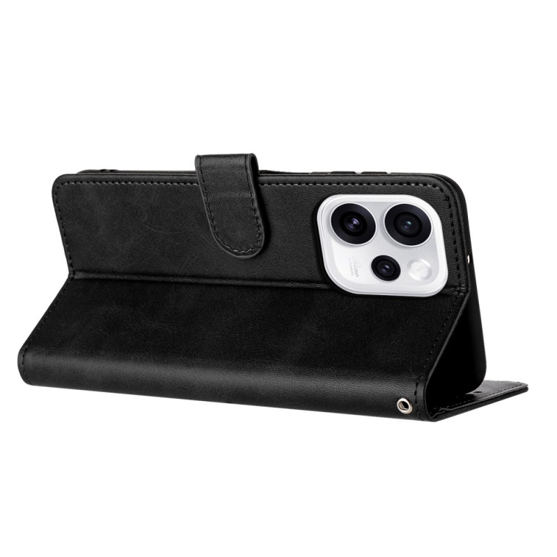 Étui portefeuille élégant pour Oppo Reno 15 Pro 5G avec texture cuir PU premium. Comprend 3 emplacements pour cartes, une poche pour espèces, un support mains-libres ajustable et une dragonne détachable. Protection intégrale contre les chocs et rayures.