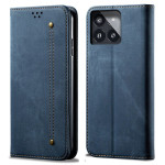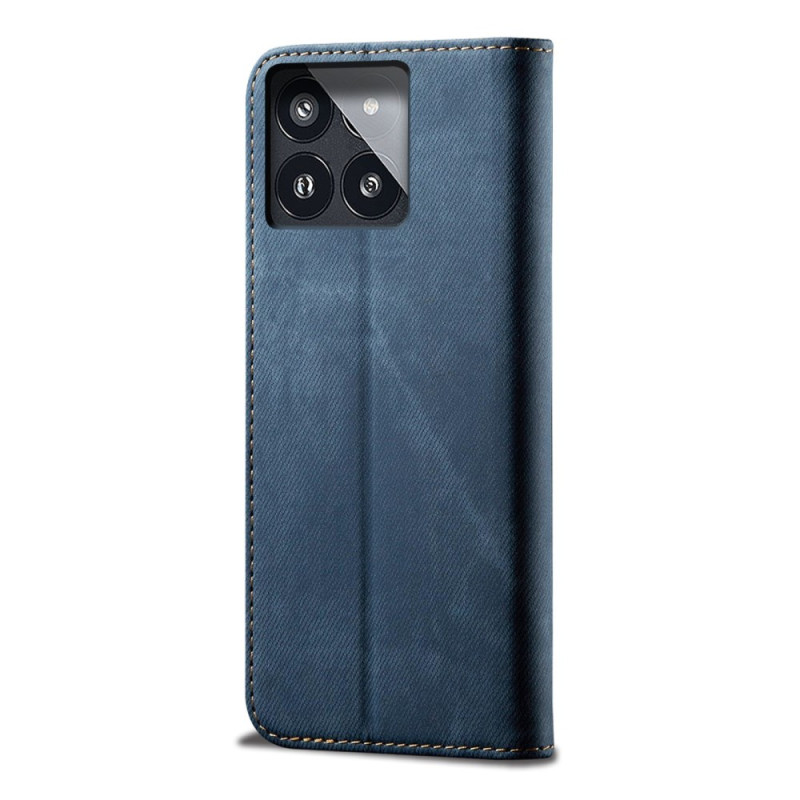 Découvrez notre étui portefeuille en simili cuir avec une texture de tissu jean.