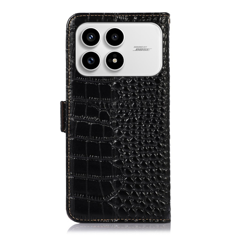 Découvrez notre étui portefeuille élégant en cuir véritable avec texture crocodile pour votre Poco F8 Pro. Doté de la technologie de blocage RFID, de 3 emplacements pour cartes et d'un support intégré, il allie style et fonctionnalité.