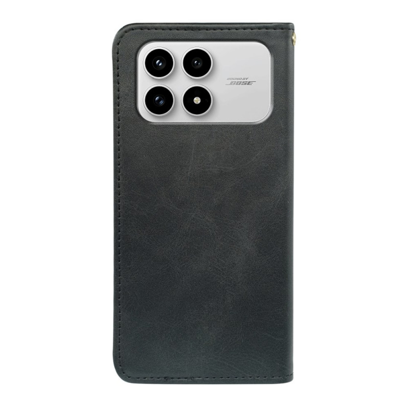 Étui portefeuille magnétique en cuir PU texture veau pour Poco F8 Pro. Protège votre téléphone avec style grâce à sa coque en TPU souple, ses 3 emplacements pour cartes, sa poche à billets et sa fonction support ajustable.